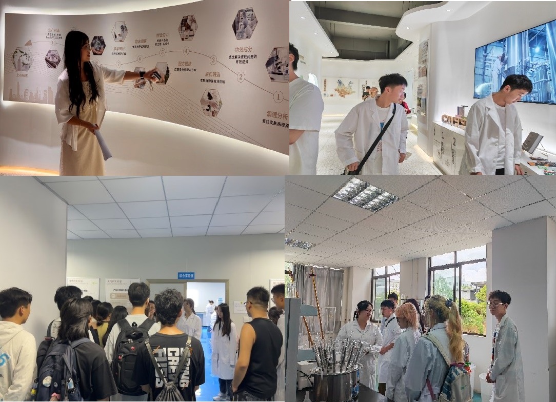 为了深入了解香料在食品、日化和烟用香精等领域的生产流程和应用,同学们参观了云南西草资源开发有限公司、云南悦馨香料科技公司、云南云烁科技有限公司。在云南西草资源开发有限公司,同学们首先参观了企业的大健康产业公共服务平台,了解企业特色产品开发的背景,以及健康食品及化妆品的研发流程,包括配方搭建、工艺设计、中试研究及规模化生产等。随后对产品研发区域进行参观,赵于丁老师给同学们讲解了槽型混合机、高速压片机、真空冷冻干燥机等设备。周恒苍老师讲解了产品上市之前进行功效评价、安全评价的重要性,拓展了同学们的专业知识。